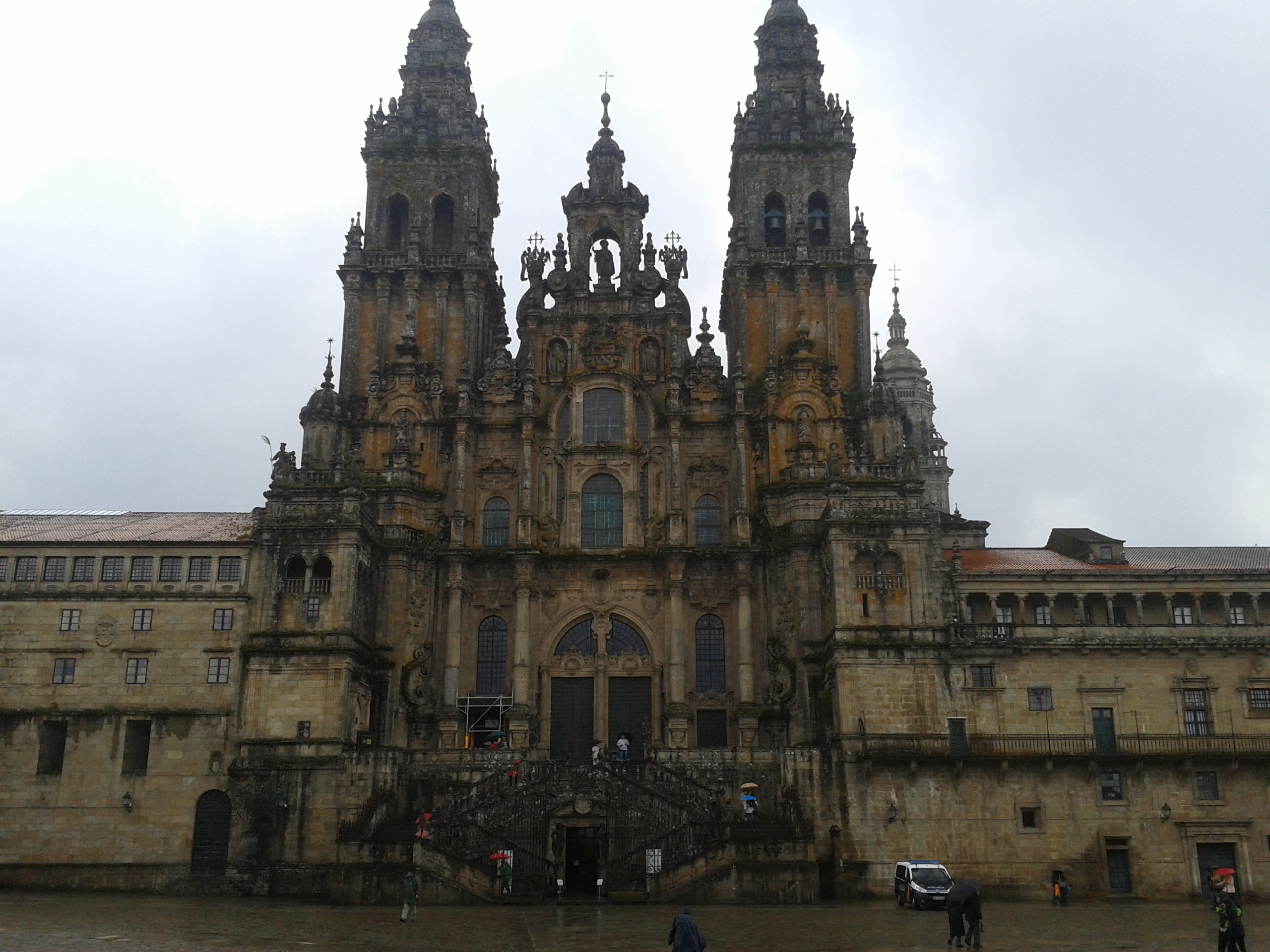Der Regen hat mich dann doch noch am Stadtrand von S.d.C erwischt. Wurde ne heftige Dusche. War dann so gegen 16 Uhr auf dem Vorplatz der Kathedrale. Was für’n Moment nach den Tagen der Hitze und den Schmerzen. Hier auf dem Platz kamen alle Caminos zusammen (Camino Frances, Camino del Norte, Via de la Plata und mein Camino Português). Aber irgendwie war der Trubel nicht meine Sache. Suche mir noch ein Bett für eine Nacht und laß den Tag ausklingen.